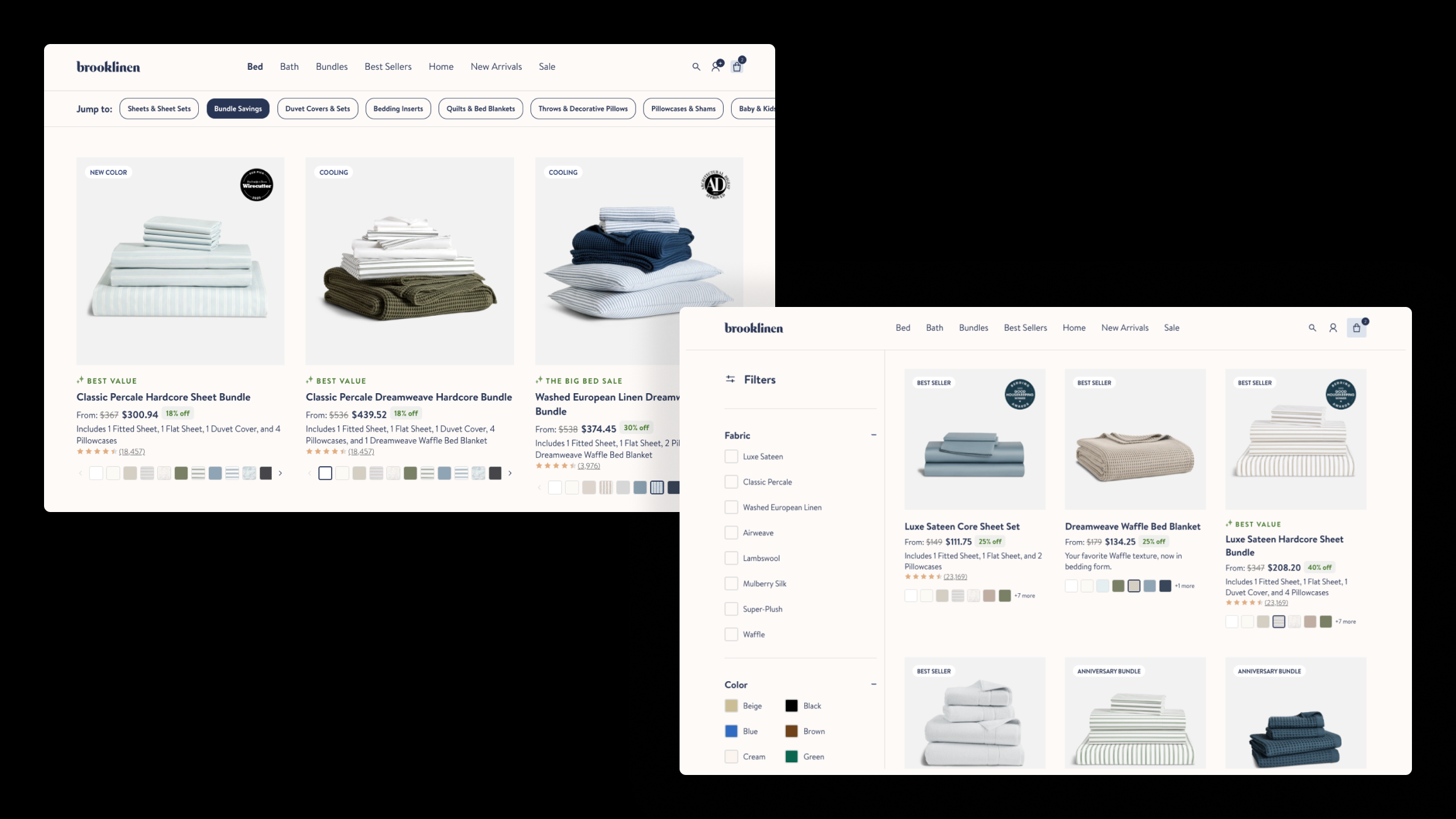 Brooklinen’s website lacked filtering capabilities which limited our users' ability to navigate and refine product based on their preferences or needs.