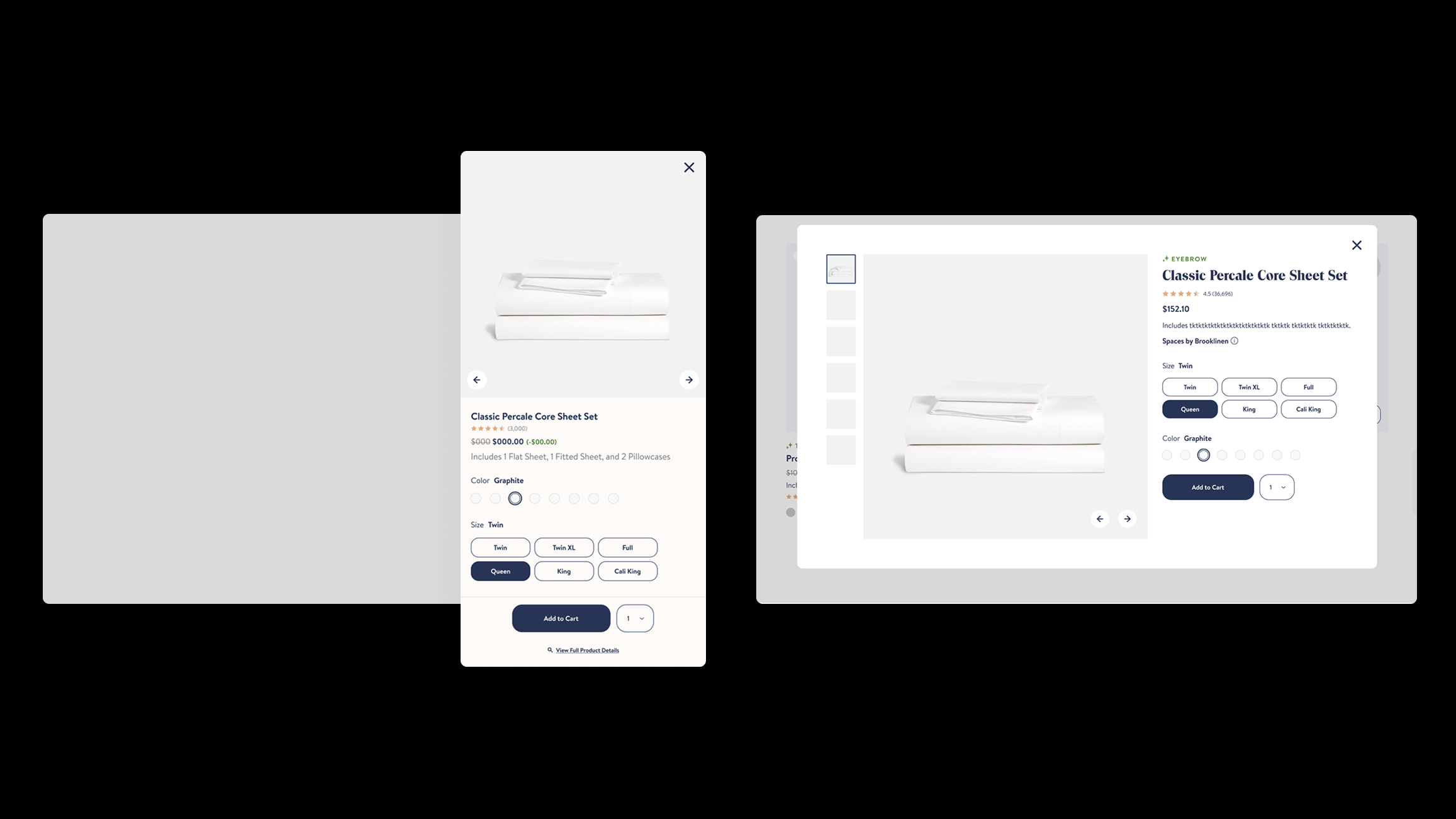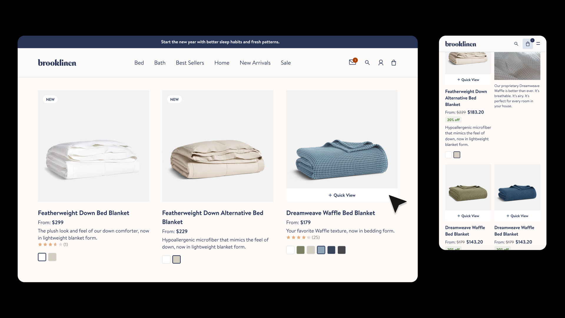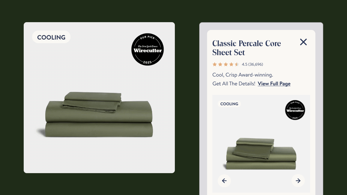 Brooklinen’s website lacked a quick-view feature, meaning users had to visit individual product pages to see details and add items to the cart.