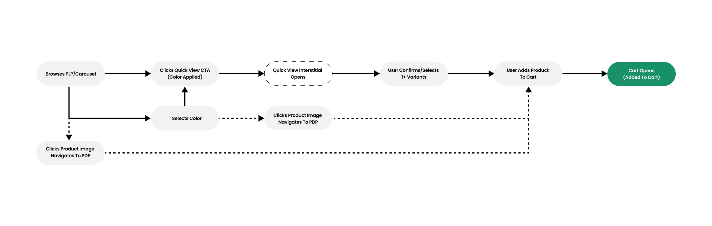 We landed on an approach that focused on a text based button so it was clear to users what action they were taking: Quick view for products with multiple variants and quick add for products with a single variant. This approach led to a positive measurable impact on key KPIs.